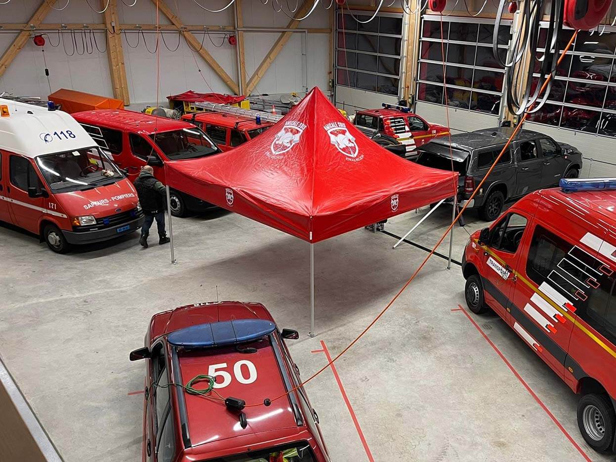 Organisieren Sie Ihre Einsätze in aller Sicherheit: Die Profi-Faltpavillons von VITABRI passen sich allen Notfallsituationen an.