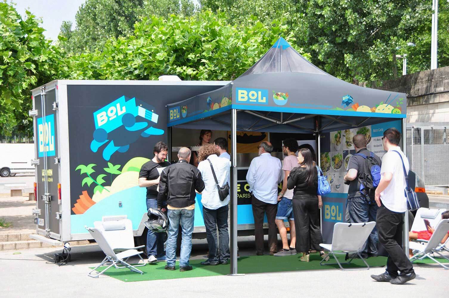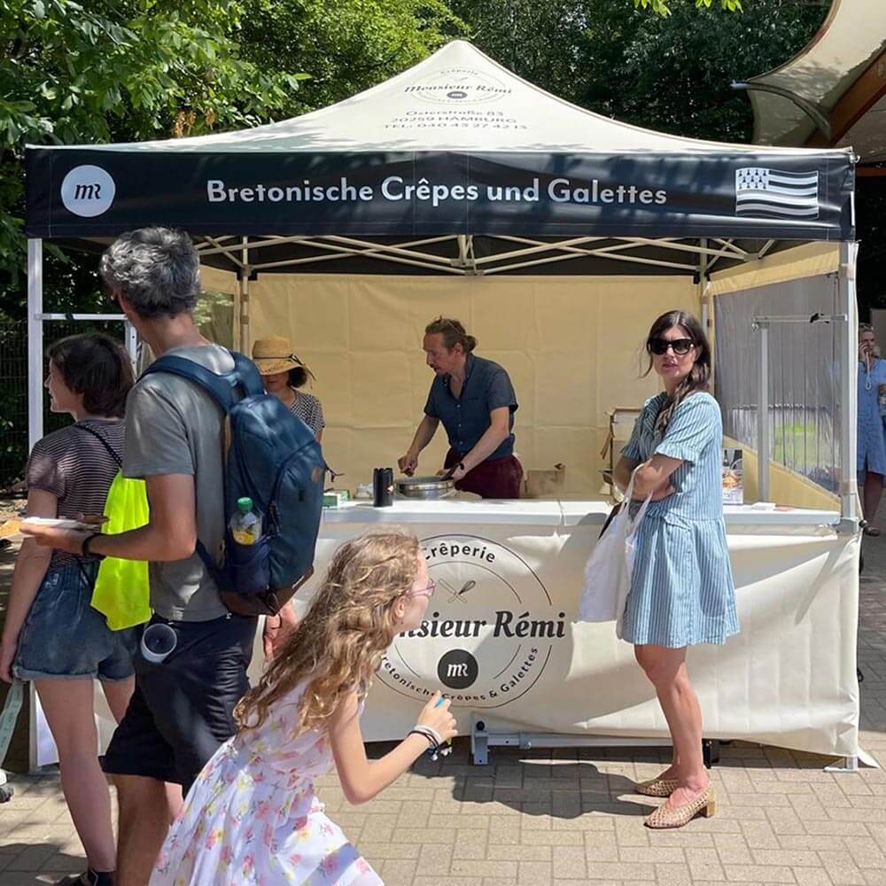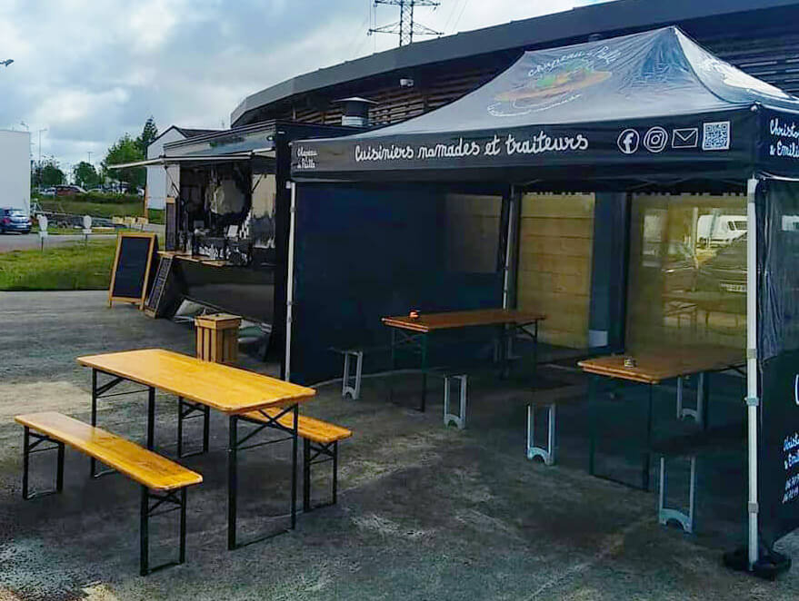 Als hervorragender Kommunikationsträger ist der mit dem Logo Ihres Foodtrucks personalisierte Faltpavillon ein echter Blickfang, sogar aus der Ferne!