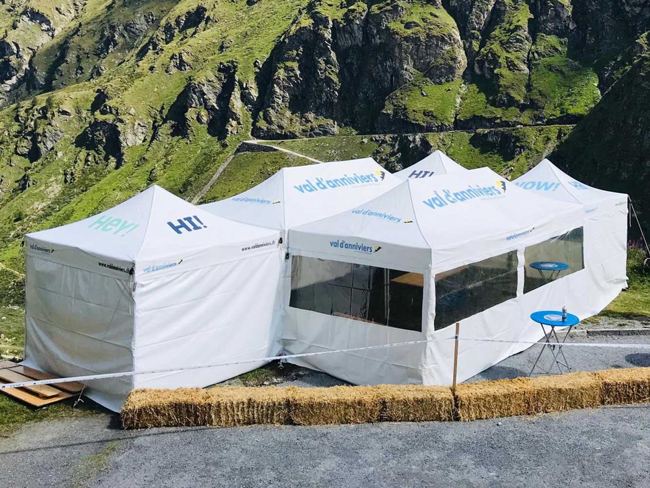 Nicht nur die Sichtbarkeit ist wichtig, sondern auch die Sicherheit: Unsere Faltpavillons halten selbst widrigen Witterungsbedingungen (Regen, Wind, Schnee) gut stand.