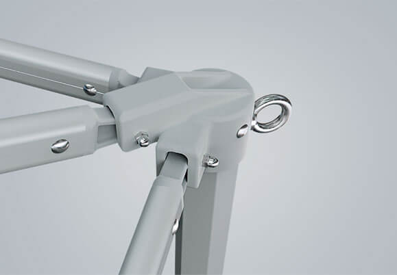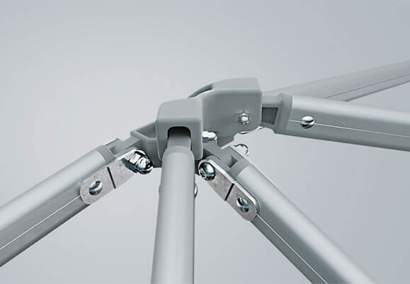 | Abmessungen | Geöffnete Abmessungen (m) | Zusammengeklappte Abmessungen (m) | Gewicht (kg) mit PVC 500 Dach | Höhe unter der Wertigkeit | Dachhöhe | Oberer Fußdurchmesser (mm) | Durchmesser des unteren Fußes (mm) |