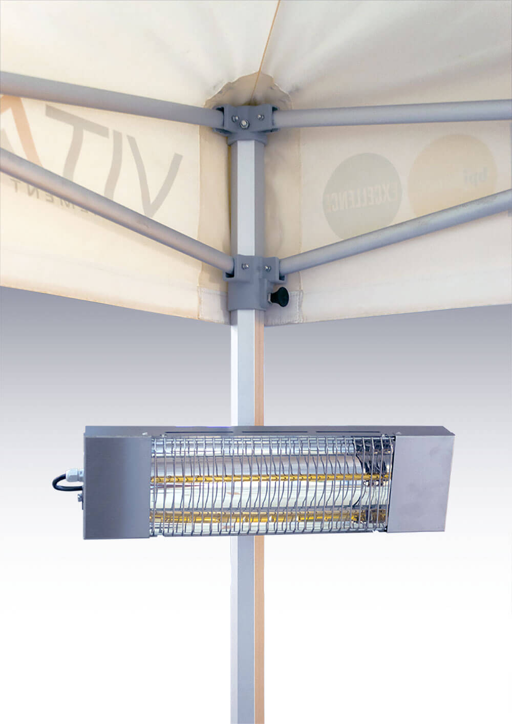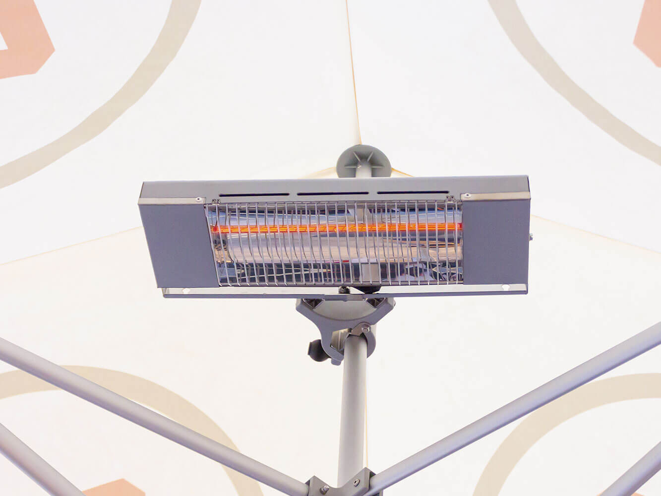 Diese Quarzheizung erzeugt Strahlungswärme. Der Heizstrahler wird auf einer Halterung montiert, über die er in die gewünschte Richtung ausgerichtet werden kann. Dank seines schlichten und ansprechenden Designs ist er zugleich diskret und effizient.
