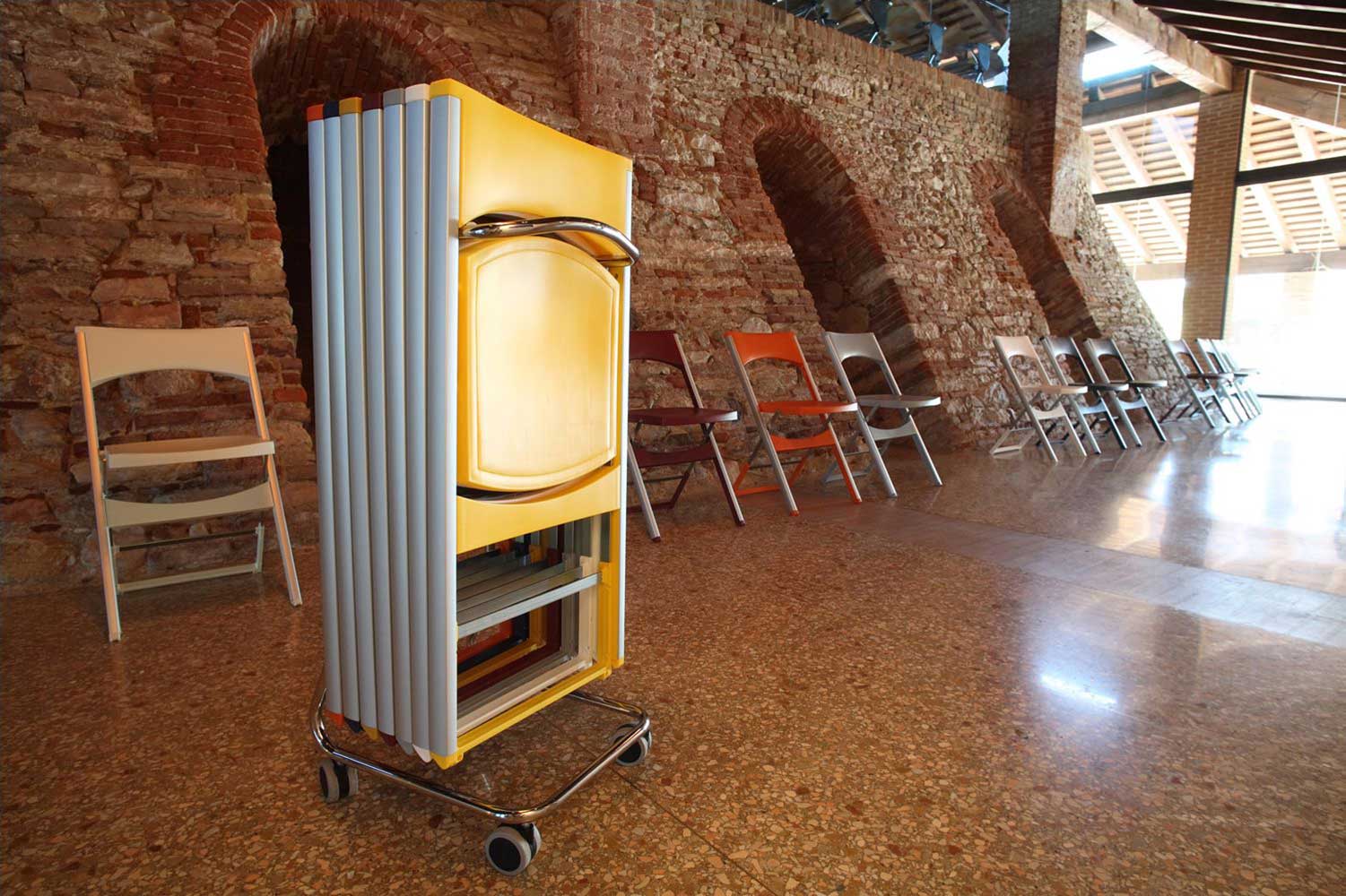 Brotkrümelnavigation:Startseite > Zubehör > Mobiliar > Klappbares Mobiliar > Klappstuhl Klappstuhl Satz von sechs Klappstühlen, die auf einem Rack gelagert werden. Mehrere Farben erhältlich. Fordern Sie einen Kostenvoranschlag an +33 (0)3 81 55 94 22