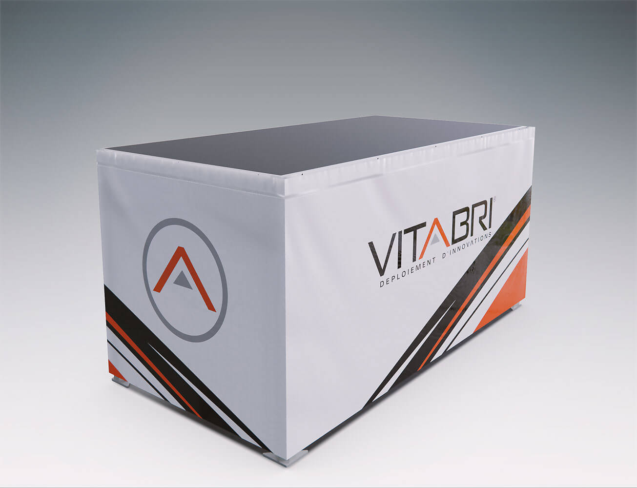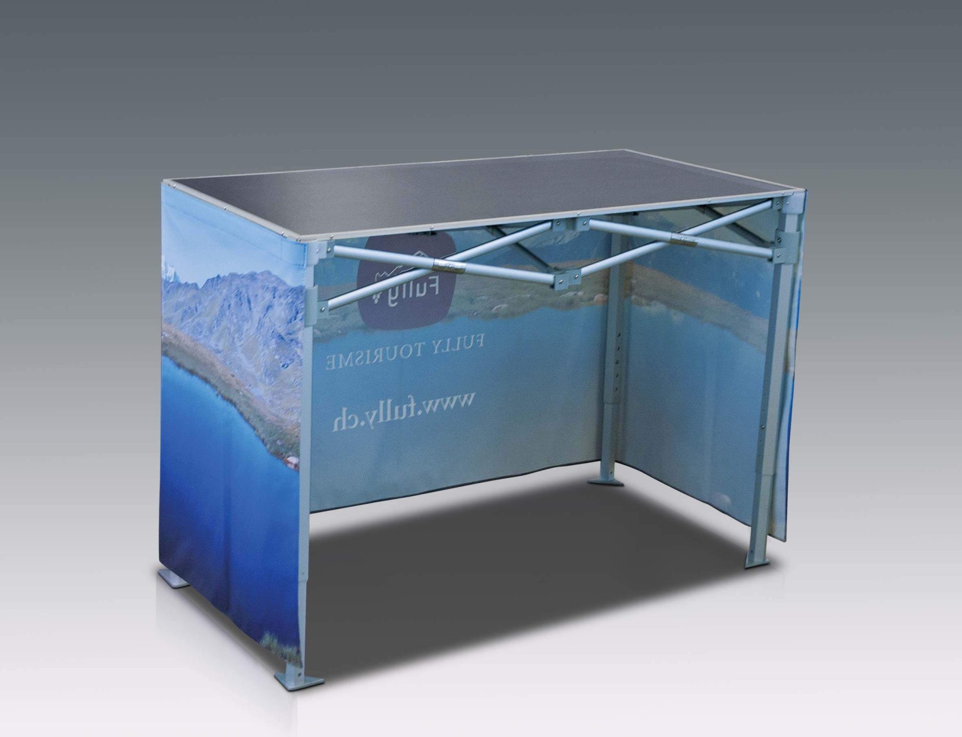 Höhenverstellbarer Klapptisch aus Aluminium mit Tischplatte. Rollen und Verkleidung optional